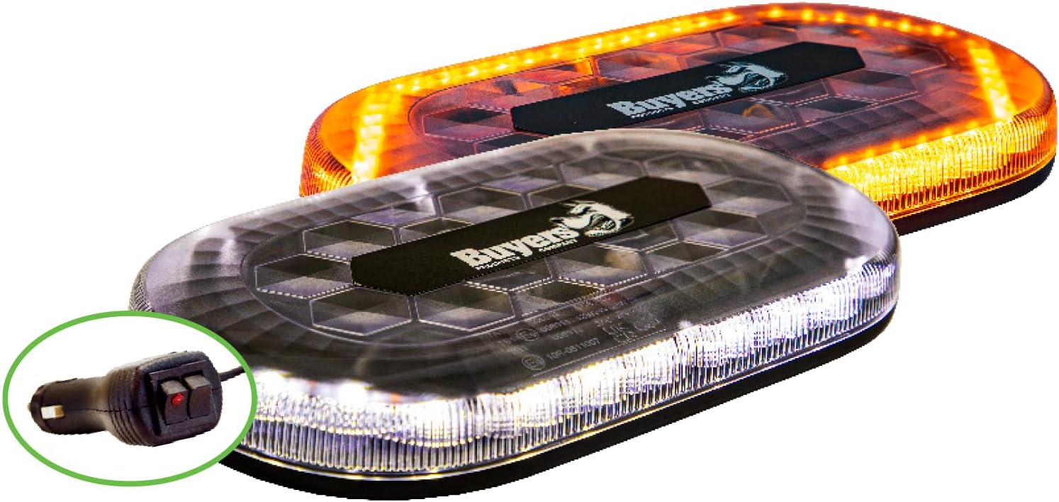 Buyers Products 8891172 Amber/Clear LED Mini Light Bar, Permanent or Magnetic Mount, 15' Lead with On/Off Switch, Emergency Lights for Vehicles, LED Strobe Lights for Trucks