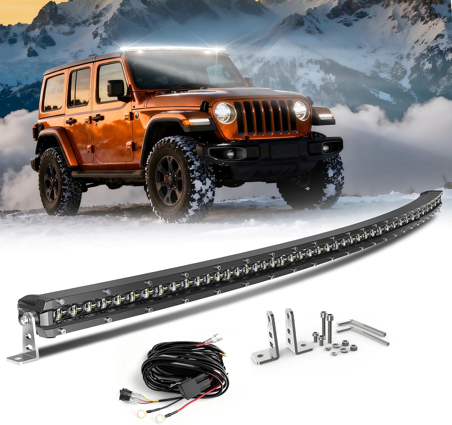 CO LIGHT Curved LED Light Bar 50 Inch Single Row Ultra-Slim 6D Optic Spot Flood Combo Beam Driving Light IP68 Waterproof Off-Road Work Light with Harness for Truck ATV UTV SUV Pickup