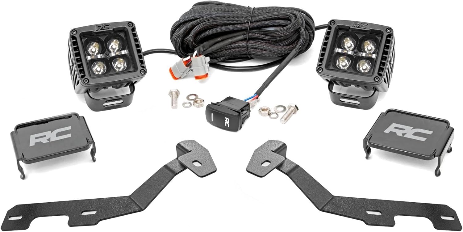 Rough Country Dual 2" LED Ditch Light Kit for Toyota Tacoma (2005-2015) - (2) 2-inch Black Series LED Cubes with White DRL