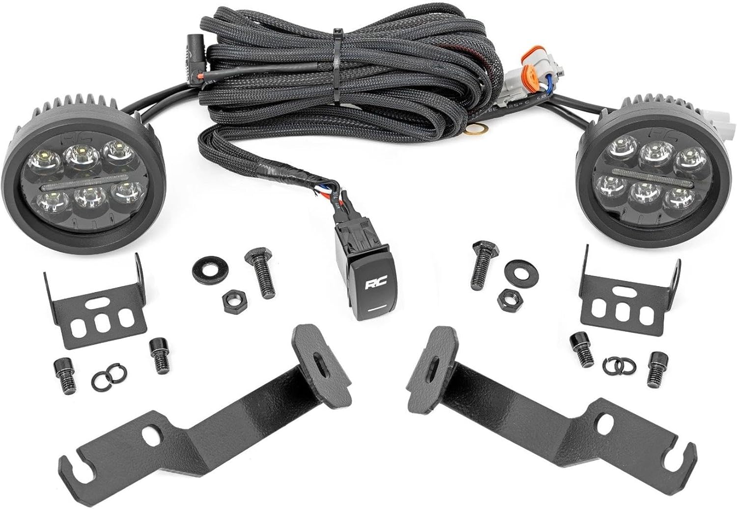 Rough Country Dual 3.5" Round LED Ditch for Toyota Tacoma (2005-2015) - (2) 3.5-in Round LED with Amber DRL