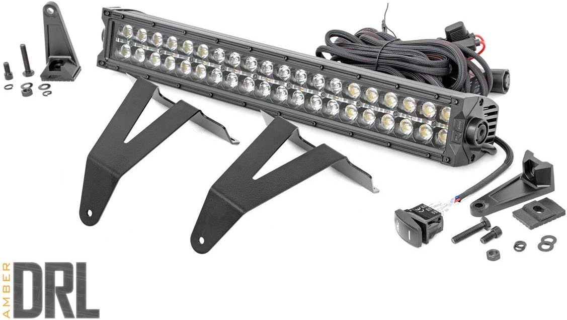 Rough Country 20" Dual Row LED Light Bar Bumper Mount Kit with Amber DRL for Ram 1500 (2019-2024) - 120W, 9600 Lumen CREE LED, Combo Spot Flood Beam