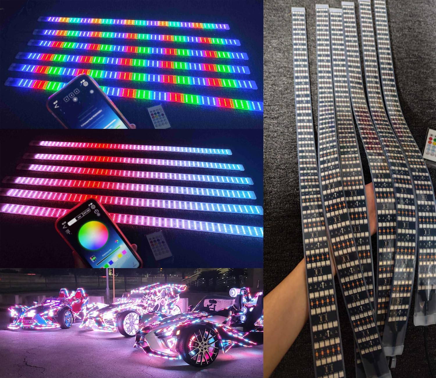 Lighting - 6PCS 3FT 0.9Meters 36" RGB Dream Color LED Chasing Addressable IP68 5-Row Strips APP Remote for Slingshot Golf Cart Wheel Lights Underbody Fender Grille Off - Road Motorcycle