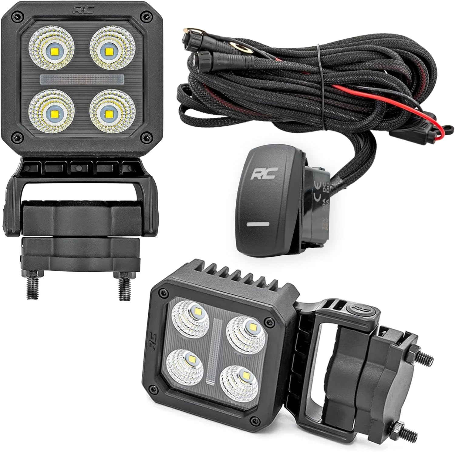 Rough Country 2" Square Swivel Mount LED Light Pods with Amber DRL - Flood Beam, 360° Adjustable Off-Road Cube Lights, 40W 3600 Lumens Cree LEDs, IP67 Waterproof