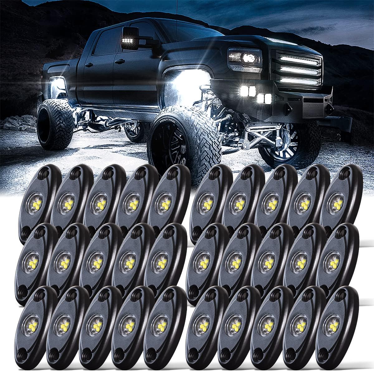 LEDMIRCY White Rock Lights 30PCS High Power Underbody Pure White LED Rock Lights for Off Road Trucks ATV UTV SUV RZR Boat Underglow TRAI Rig Light Waterproof Shockproof