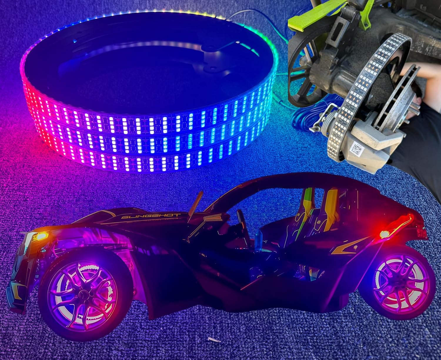 3PCS 4-Row RGB Dream Color Chasing Polaris Slingshot Wheel Lights, Bluetooth + Remote | for Polaris Slingshot S/R/SL/SLR/GT (2015-2025)