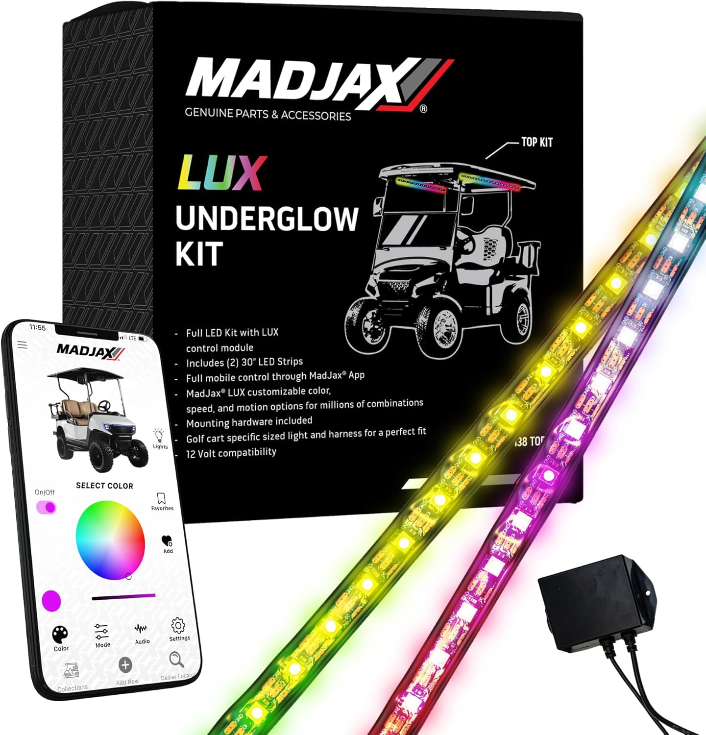 MadJax LED Golf Cart Underglow Accent Neon Light Strip Kit Compatible with EZGO Club Car Yamaha 12V | Sync to Music and Headlights with App Control | Water Resistant | 2PC (Under Top Kit)
