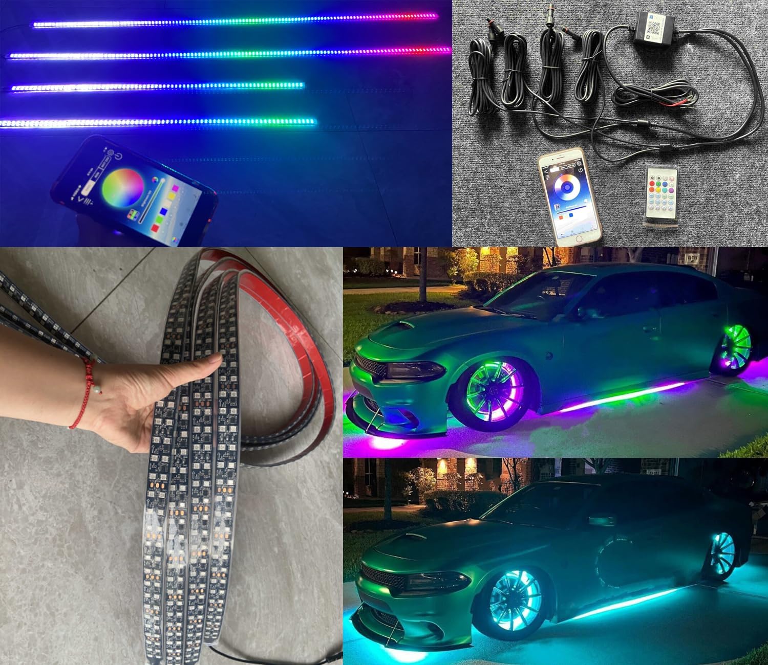 2PCS 4FT + 2PCS 6.5FT Double Row RGB Dream Color Chasing Flow Series Illuminated Underbody Lighting Off-Road Fender Underglow Light Strips APP+Remote for Car Truck SUV Pickip Slingshot
