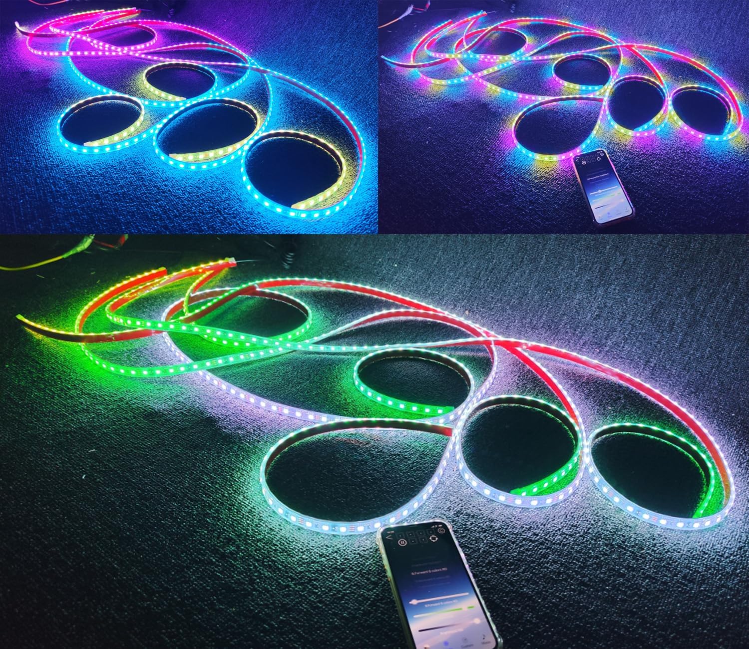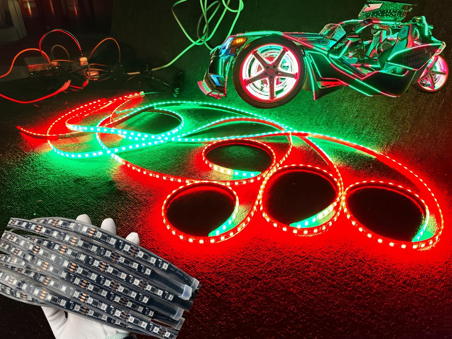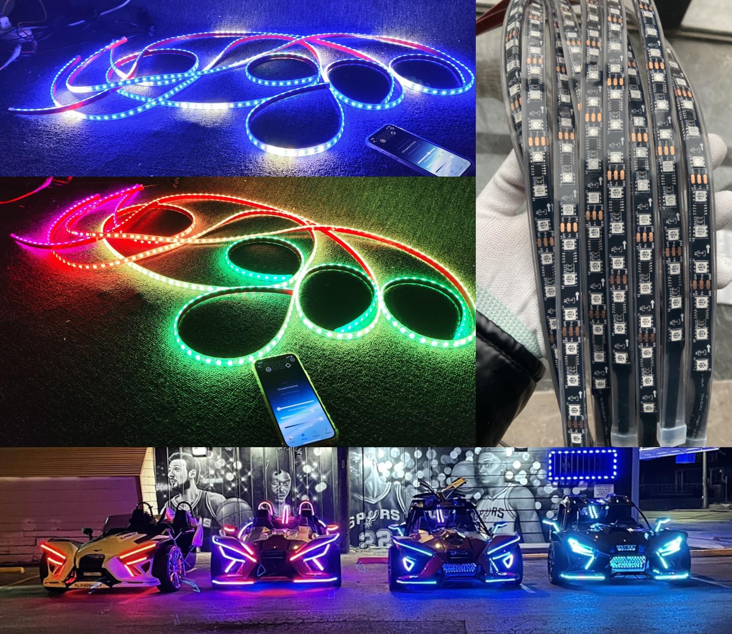 16PCS 6.5-Foot LED Light Strips – IP68 Waterproof RGB Dream Color Underglow Lights for Polaris Slingshot, Cars, and Trucks with Bluetooth Remote Control