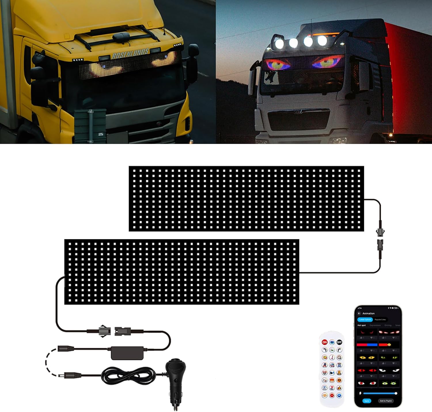 Pantalla Led Flexible para Carros, Devil Eyes Light for Cars, Colorful Eye Lamp Soft Screen for Car Windows, Flex LED Display for Car, Windshield Eyes Animated Led (2, 16 * 64 cm/3.6 * 14.7in)