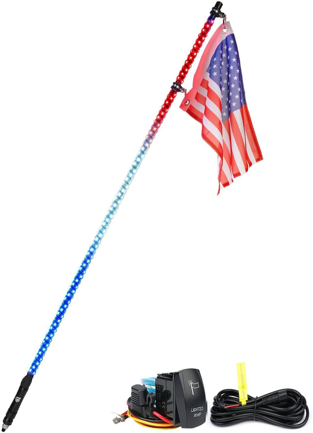 Xprite 5FT Spiral Whip Lights, Red White Blue LED Whips Light w/Flag Pole Safety Flexible Antenna for Offroad Sand Dune Buggy UTV ATV 4X4 Polaris RZR 4X4 Can-Am Maverick Trophy Trucks