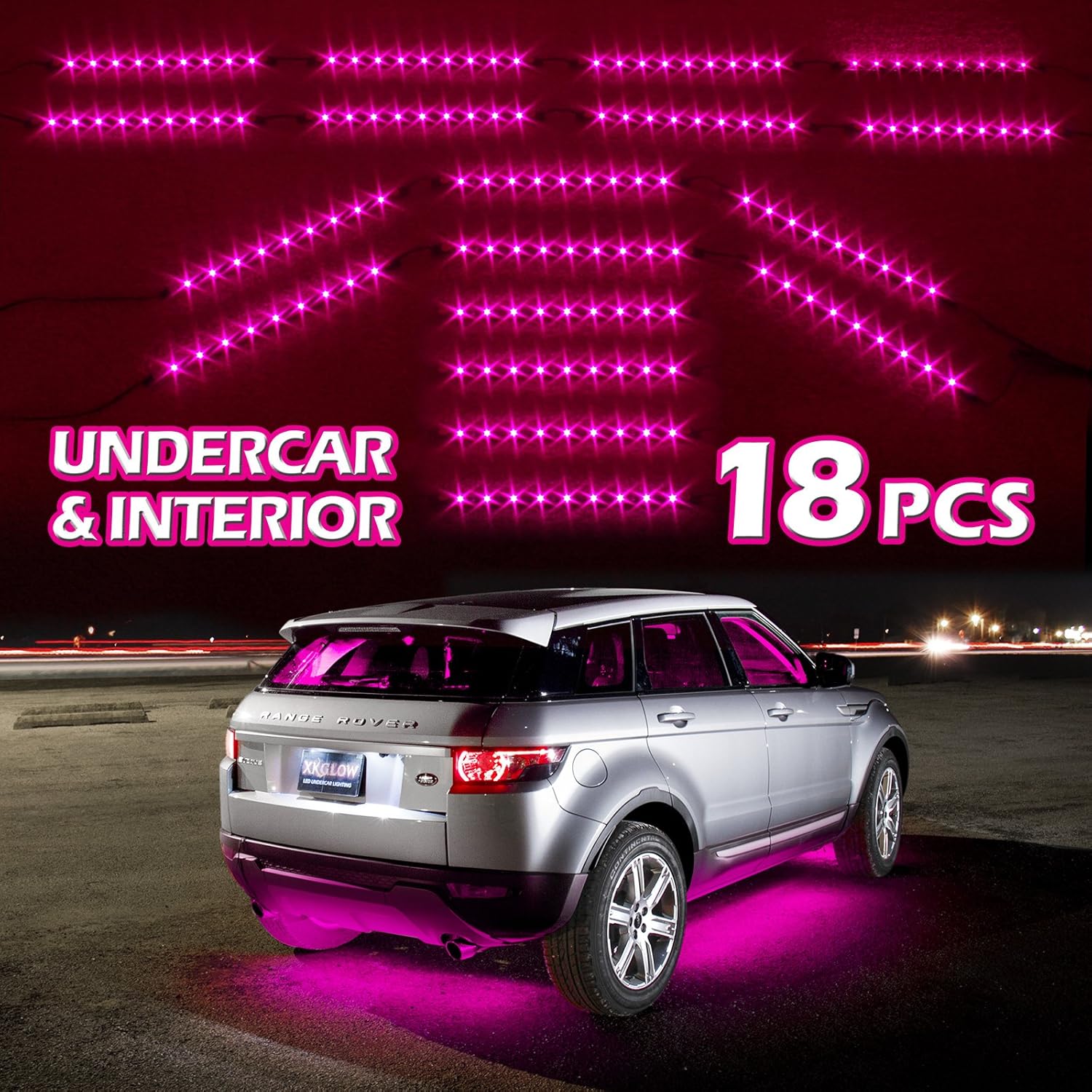 PINK Premium 18pcs Underglow + Car Interior Three Mode LED Neon Accent light Kit Waterproof Ultra Bright + Plug & Play Ultimate Coverage