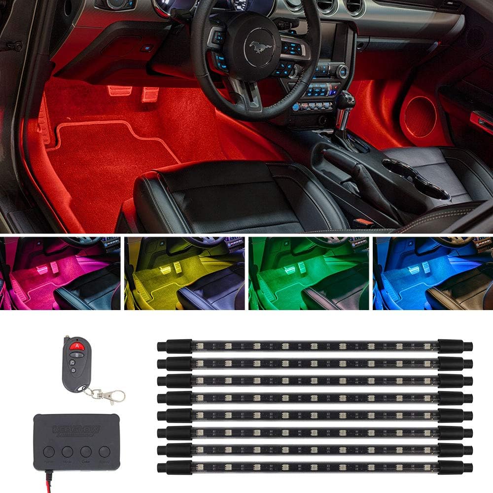 LEDGlow 8pc Million Color Multi-Color LED Interior Footwell Underdash Lighting Kit for Cars & Trucks - 18 Solid Colors - 10 Unique Patterns - Music Mode - Includes Control Box & Remote - Universal