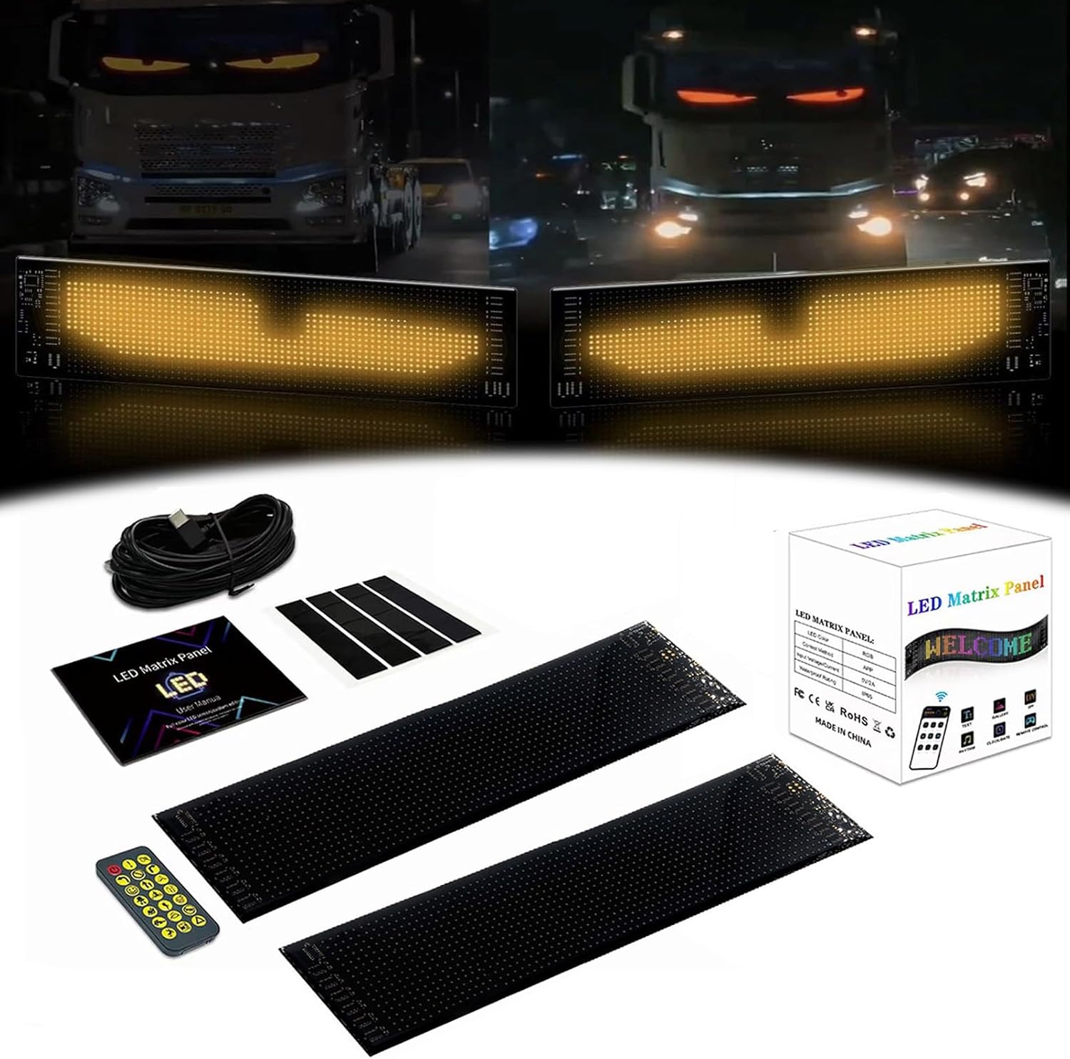 Colorful Eye Lamp Soft Screen for Car Windows, with App Remote Control USB 5V DIY, Windshield Led Eyes, Suitable for Windows of Cars and Trucks(2 Pack,B 34.8 * 10.2cm)