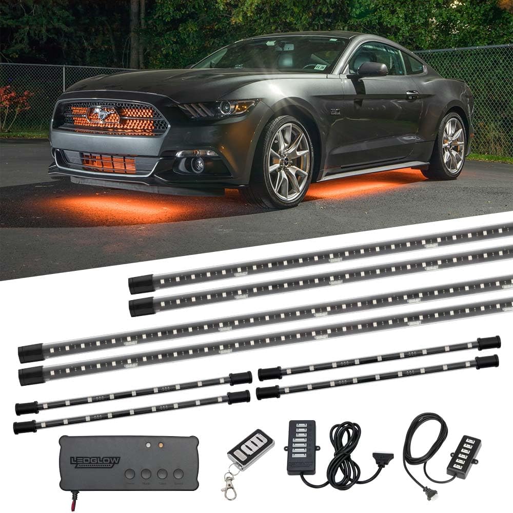LEDGlow 4pc Million Color Multi-Color LED Underbody Underglow & 4pc Interior Footwell Accent Lighting Kit for Cars - 18 Solid Colors - 12 Unique Patterns - Music Mode - Includes Control Box & Remote