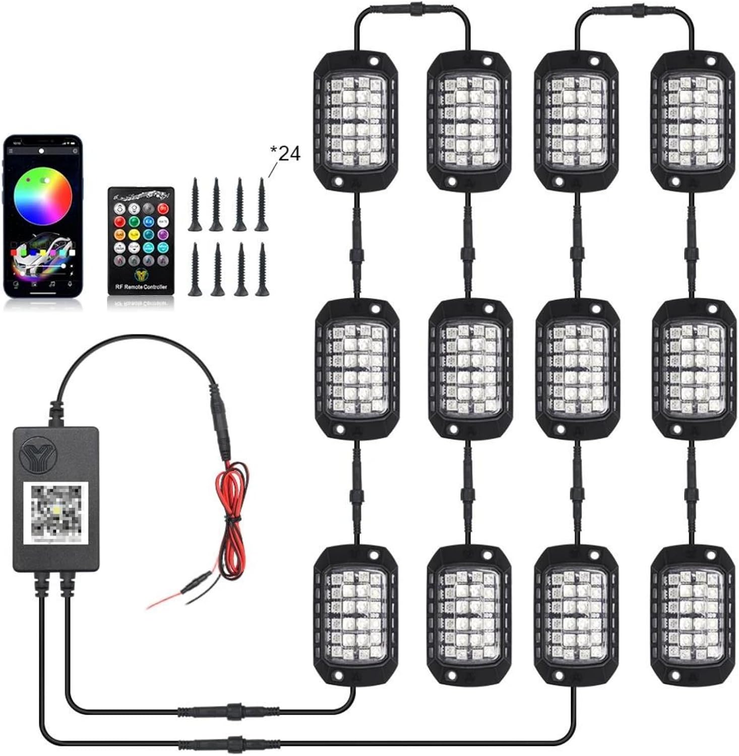RGB LED Rock Lights, Remote APP Control RGB 3D Lens LED for Offroad SUV ATV UTV Neon Underbody Undergolw Car Chassis Light,12 in 1