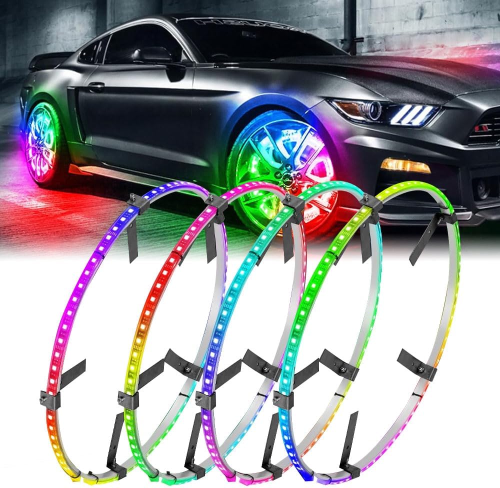 Blueshyhall 17 inch LED Rim Wheel Ring Lights 4 PCS for Car Truck Vehicle Offroad Pickup, RGB Dream Color Chasing Dancing Wheel Ring Light