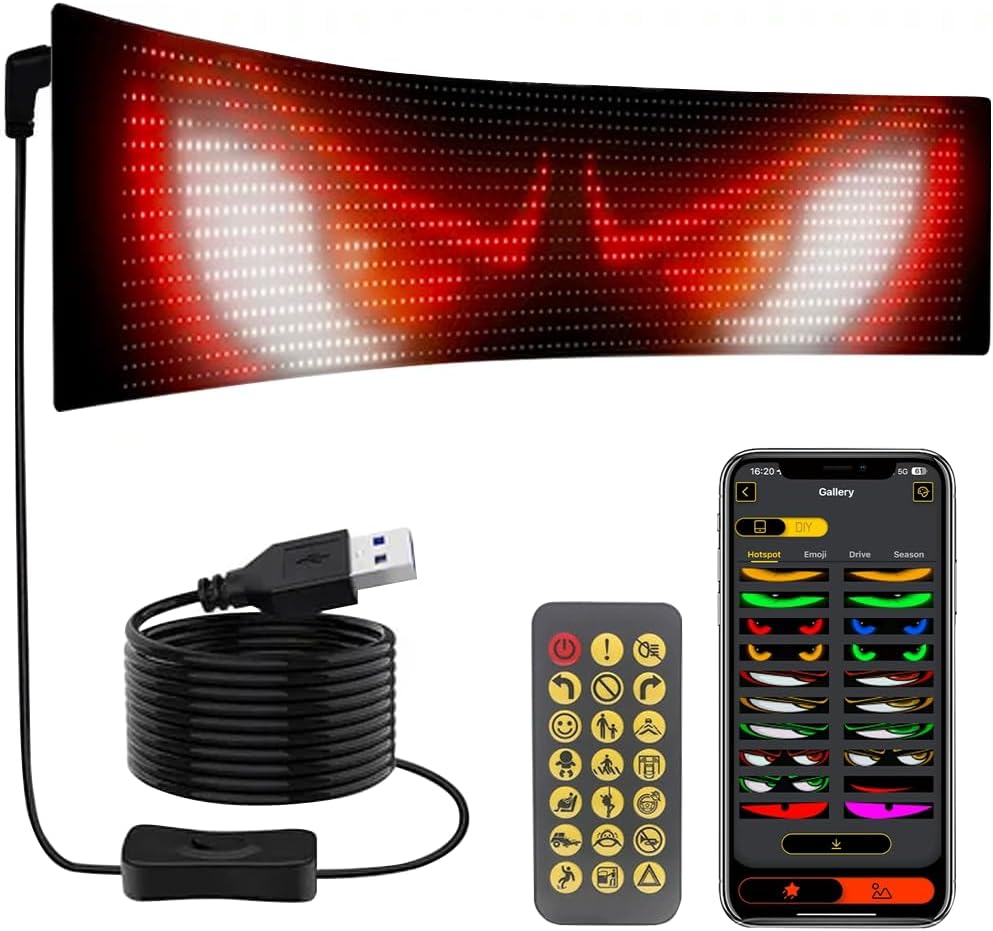 Devil Eyes Light For Cars,Programmable Sign For Car,Led Matrix Panel,Flexible Digital Display,With Remote Control, Mobile Phone App Operation, Waterproof, Suitable For Various Scenes