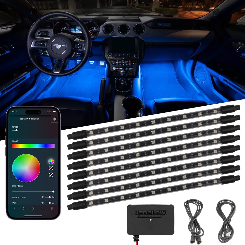 LEDGlow 8pc Bluetooth Multi-Color LED Interior Footwell Underdash Neon Lighting Kit for Cars & Trucks - Smartphone App - Create Any Color - Courtesy Lights - Music Mode - Control Box - Universal