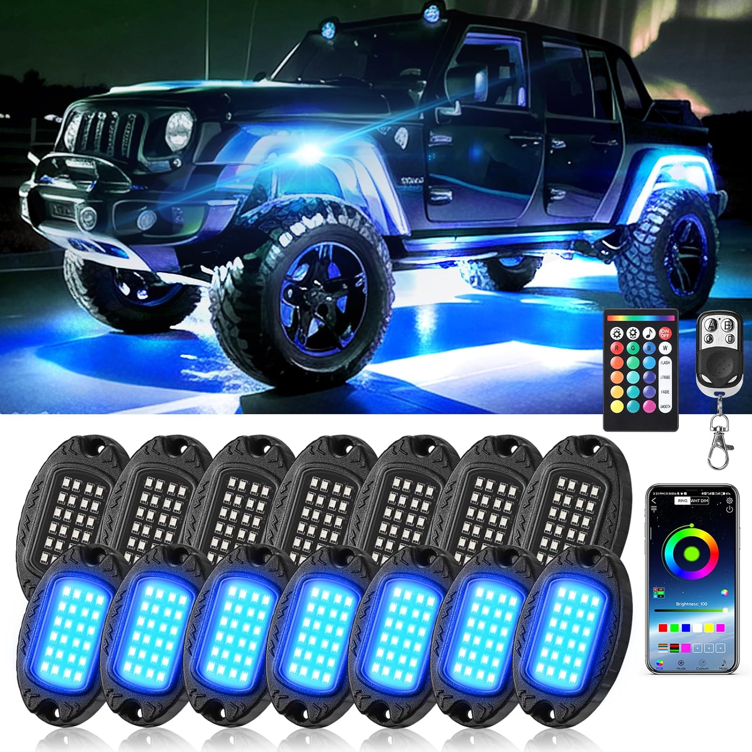 14Pods Metal Alloy RGB LED Rock Lights with APP/Dual RF Remote Control, 336LEDs Underbody Light Dual Zone Multicolor Underglow Lights Kit Neon Light Waterproof 12V for Trucks Jeep Car SUV