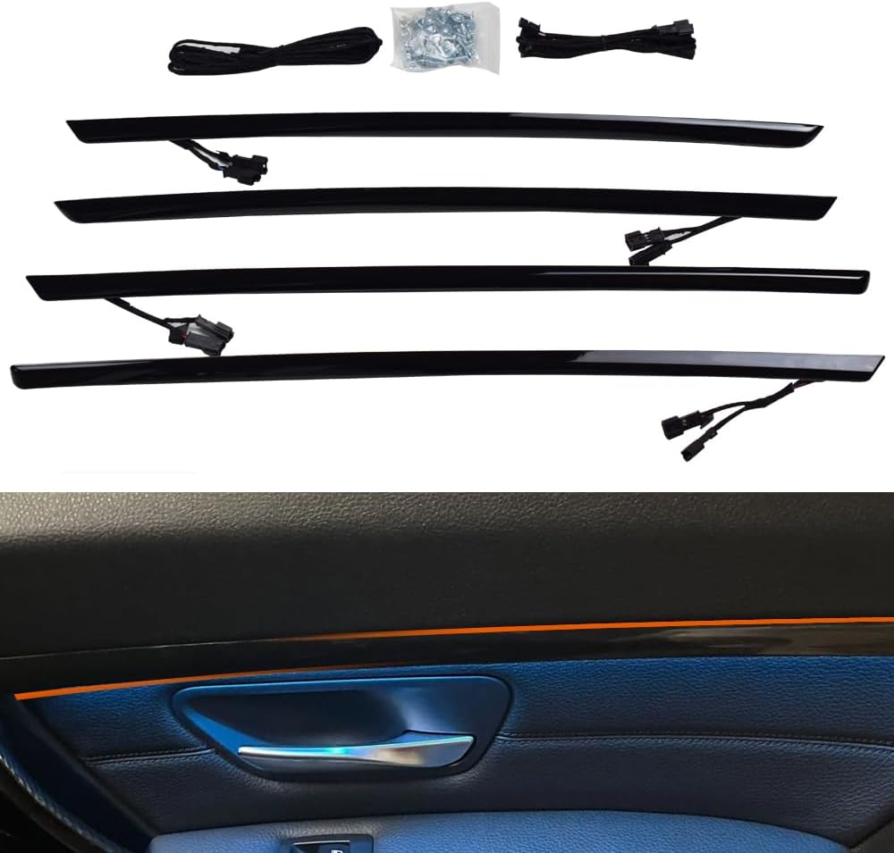 Hacreyatu Car Interior Door LED Lighting Ambient Light Trim Strip Accessories with Blue and Orange Colors Atmosphere Lights for BMW 3 Series F30 12-18-4 Inner Doors (Black)
