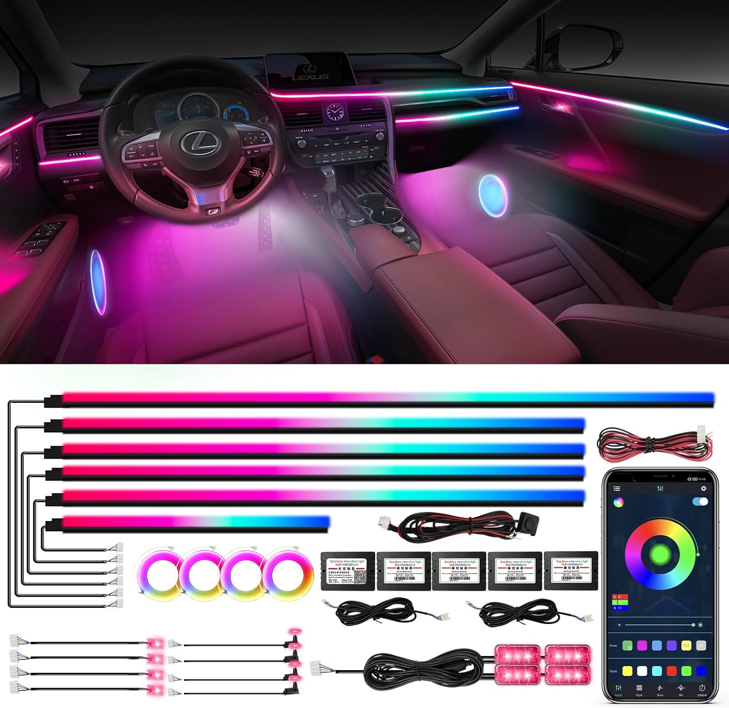 WEBUPAR Dreamcolor Acrylic Interior Car Lights, 22 in 1 RGB Car LED Strip Lights with APP Control and 213 Color Modes, Car Accessories Car Decorative Lights, Neon Car Ambient Lighting Kits