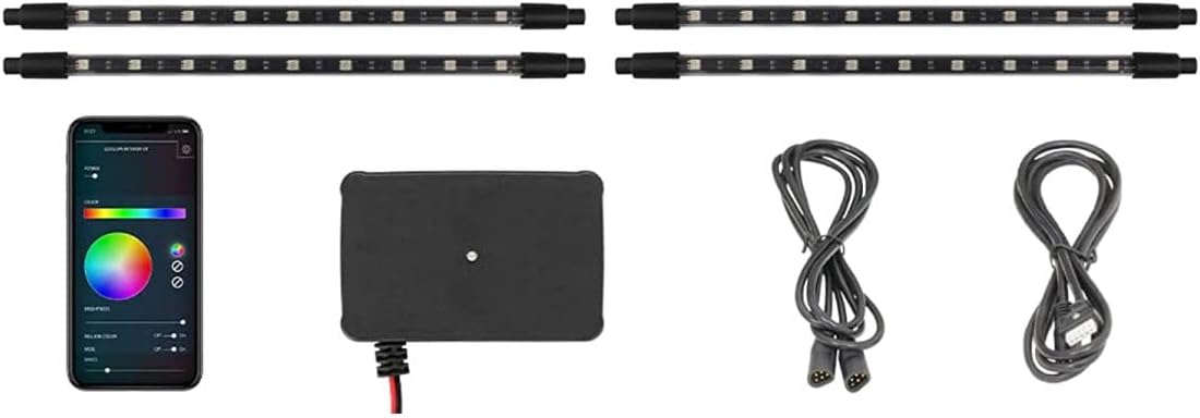 LEDGlow 4pc Bluetooth Multi-Color LED Interior Footwell Underdash Neon Lighting Kit for Cars & Trucks - Smartphone App - Create Any Color - Courtesy Lights - Music Mode - Control Box - Universal