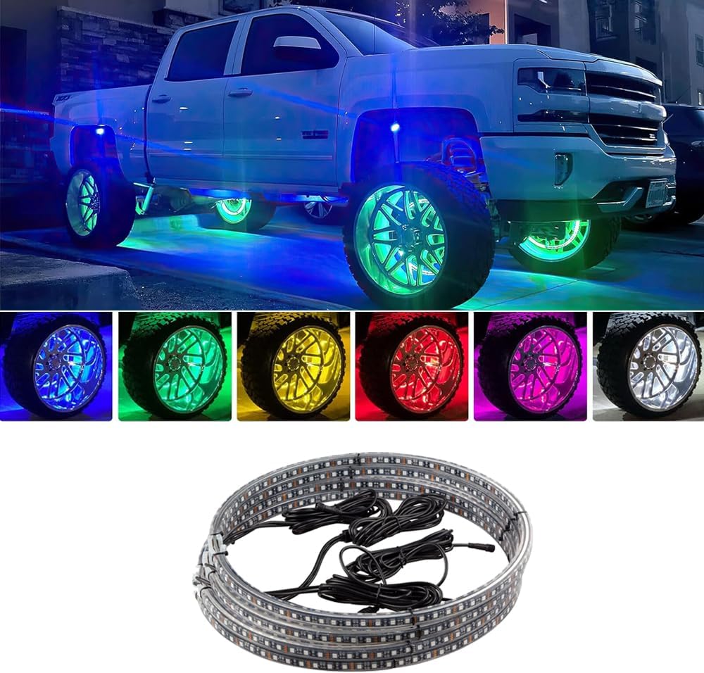 Blueshyhall 17 inch Row Wheel Ring Lights 4 Pcs for Truck Vehicle Offroad Car Pickup, Multi-Color RGB Color Chasing Dancing LED Rim Wheel Ring Lights