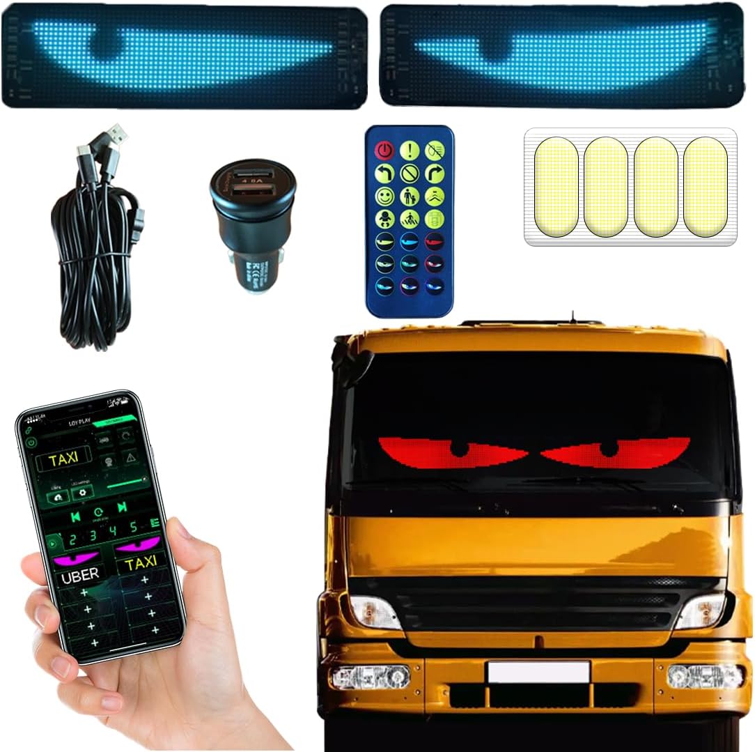 LED Devil's Eyes 2 Pack, Dual Ojos Led para Carro (23.4x4.7 inch) - Programmable USB Power RGB Display for Cars, SUVs & Trucks | Easy Sync with Remote & App Settings