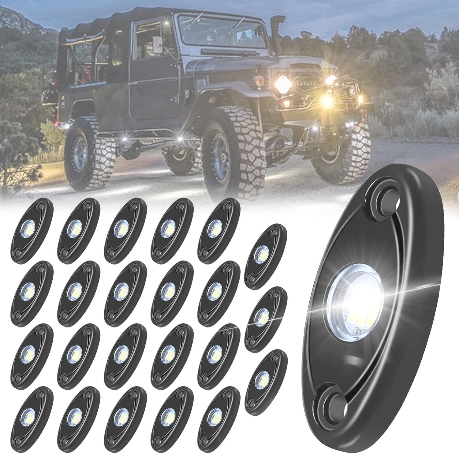 OPP ULITE White Led Rock Lights 16PCS, Waterproof Shockproof Underglow Wheel Well Light for Jeep Offroad UTV ATV ZRZ SUV Auto 4X4 Car Boat, (16pc White)
