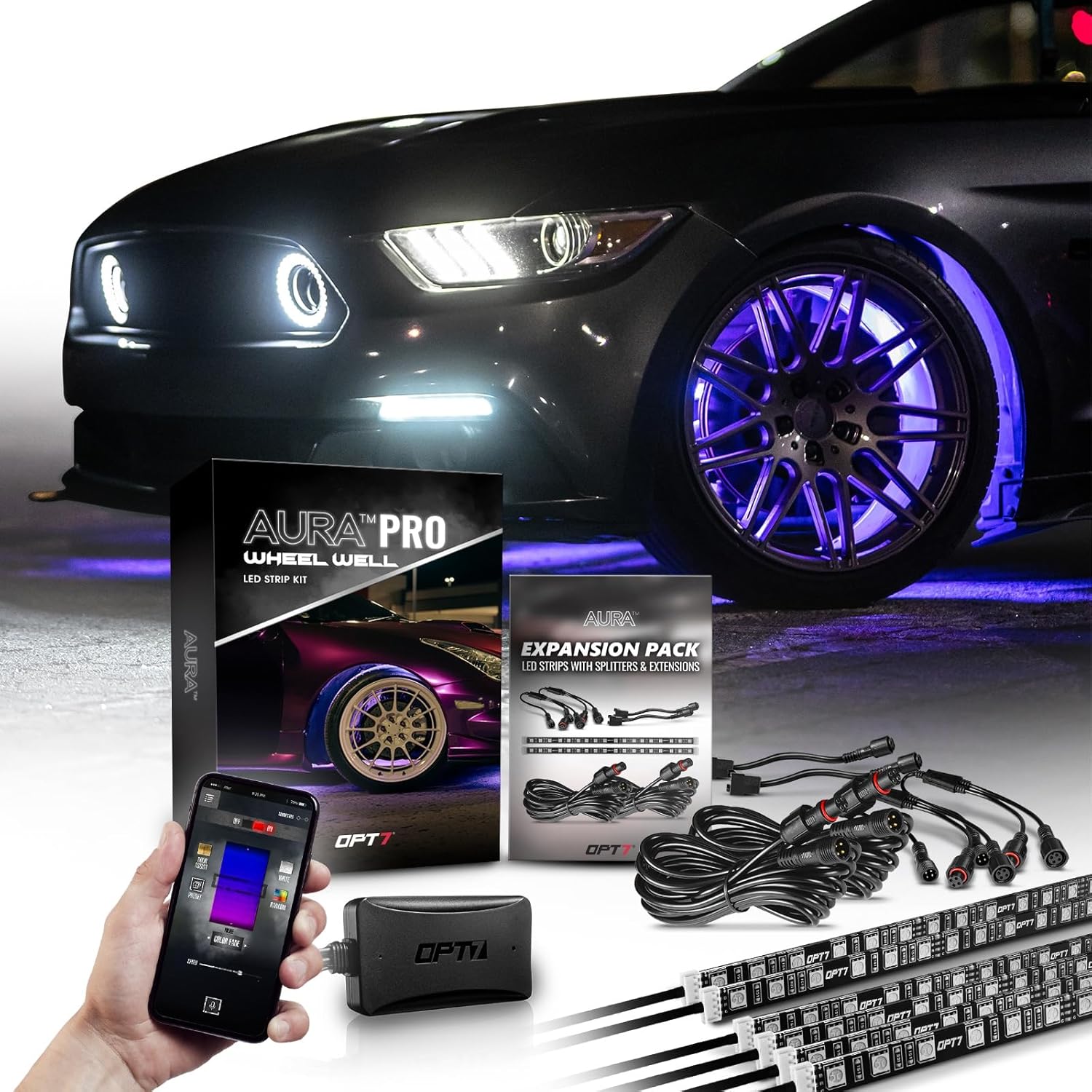 OPT7 12" LED Strip Expansion & Wheel Lights Bundle Kit with App & Remote Control, Exterior Neon RGB Lighting, Car Truck Bike Decoration