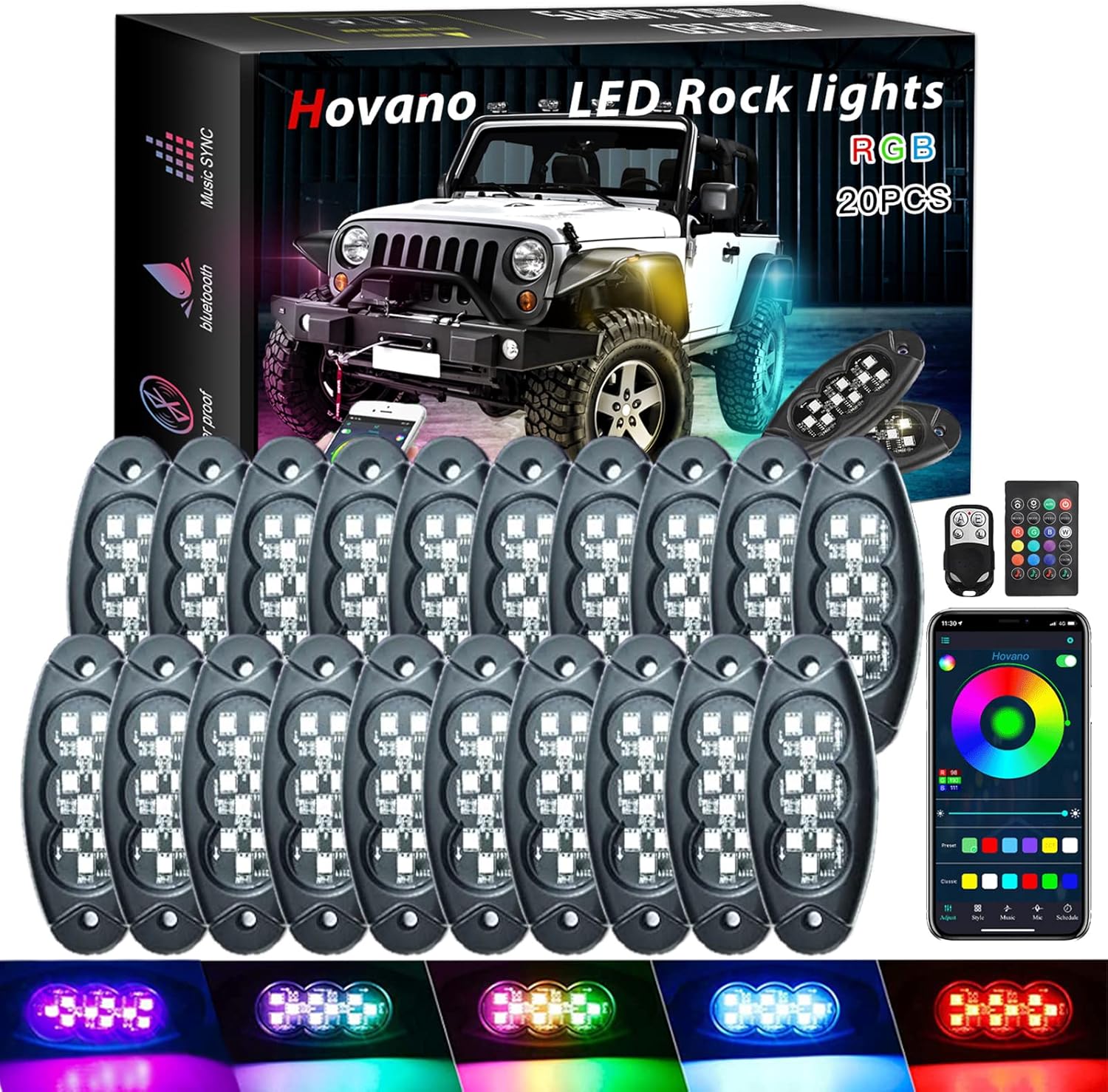 RGB LED Rock Lights, 20 Pods Waterproof Magic-RGB Multicolor Chasing Neon Underglow Music Lighting Kit with APP/RF Control for Jeep Off Road Truck Car ATV SUV RZR