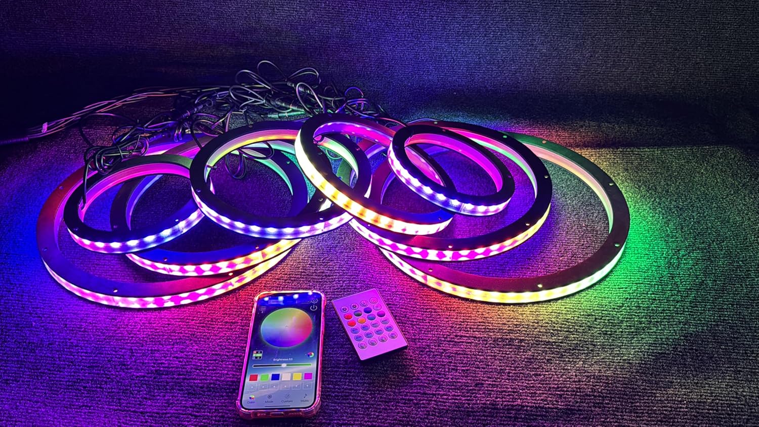 8 PCS 8" Dream Color Chasing LED Coaxial Speaker Rings Lights Kit for Car, Truck & Marine Audio - Polaris Slingshot Boat Bluetooth & Remote Control
