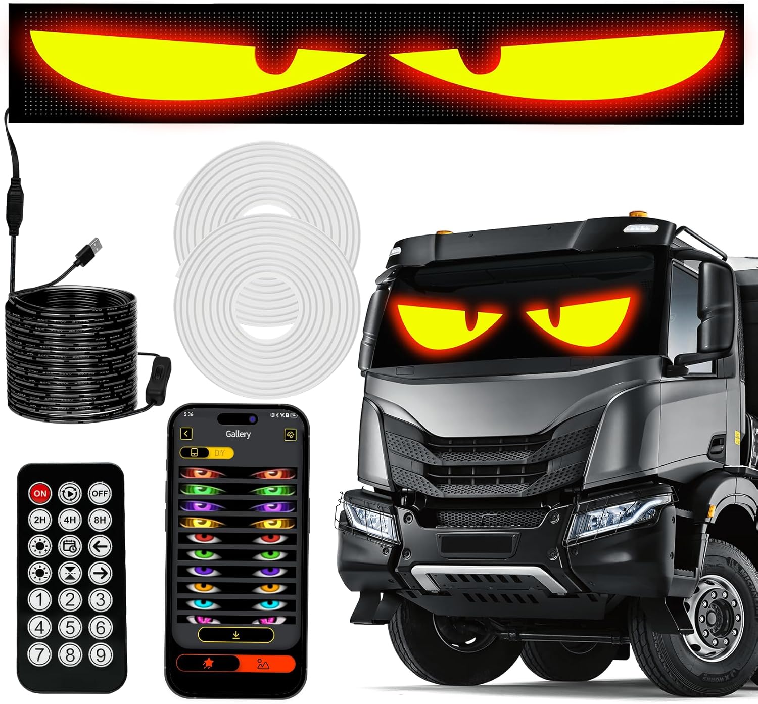52 in *7.48 in Extra-Large Devil Eyes Light for Truck Windshield, Remote + APP Dual Control, Customizable LED Eyes for Car Windshield
