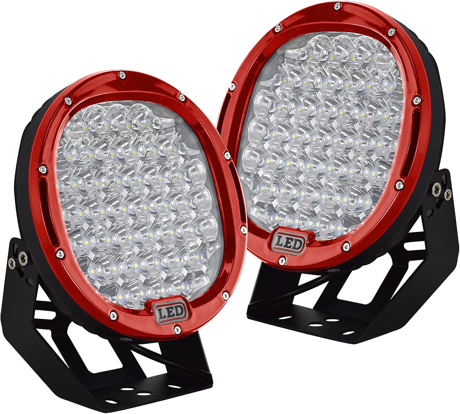 AUXTINGS 9 inch 96W Red Round Led Light Bar Spot Beam Offroad 4x4 Work Light 12V 24V Driving Fog Lamps for Jeep Truck Off-Road Vehicles 4x4 Atvs Utvs