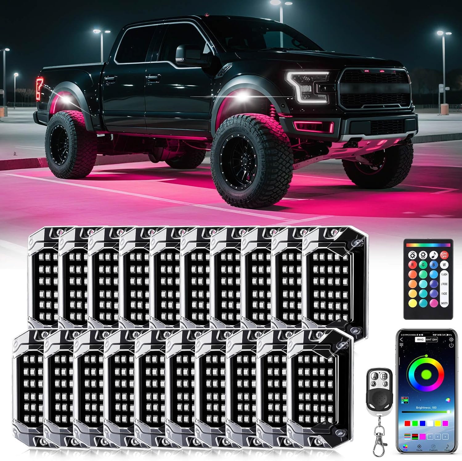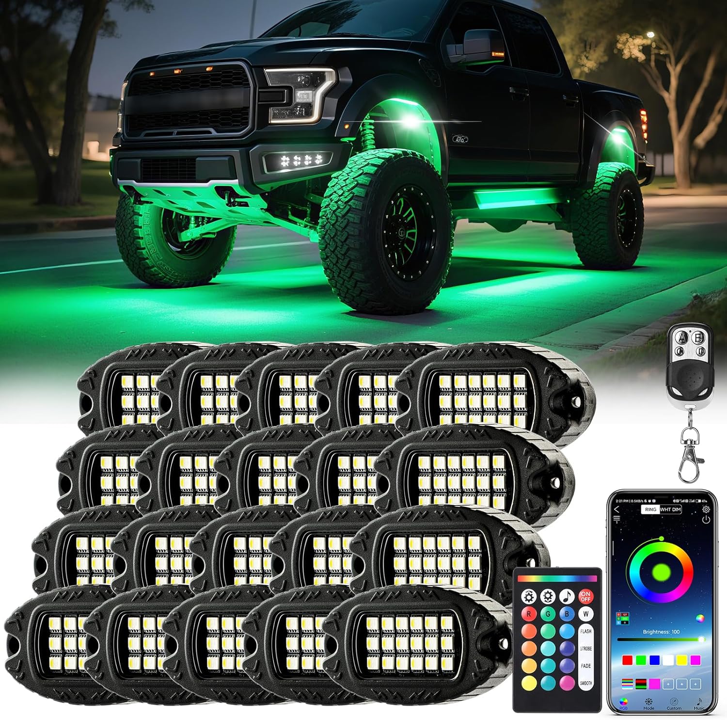 20 Pods RGB LED Rock Lights for Trucks Offroad Pickup Trailer Sedan SUV Cars, Waterproof Multicolor Neon Underglow Kit with Bluetooth APP/RF Remote, Vehicle Accent Underbody Light Underneath 12V