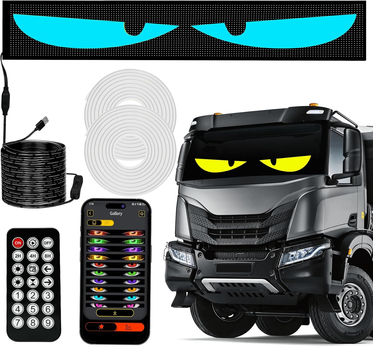 69in*7.48in Large Size Devil Eyes Light for Windshield, LED Flexible Dynamic Car Devil's Eyes (Suitable for Large Trucks)
