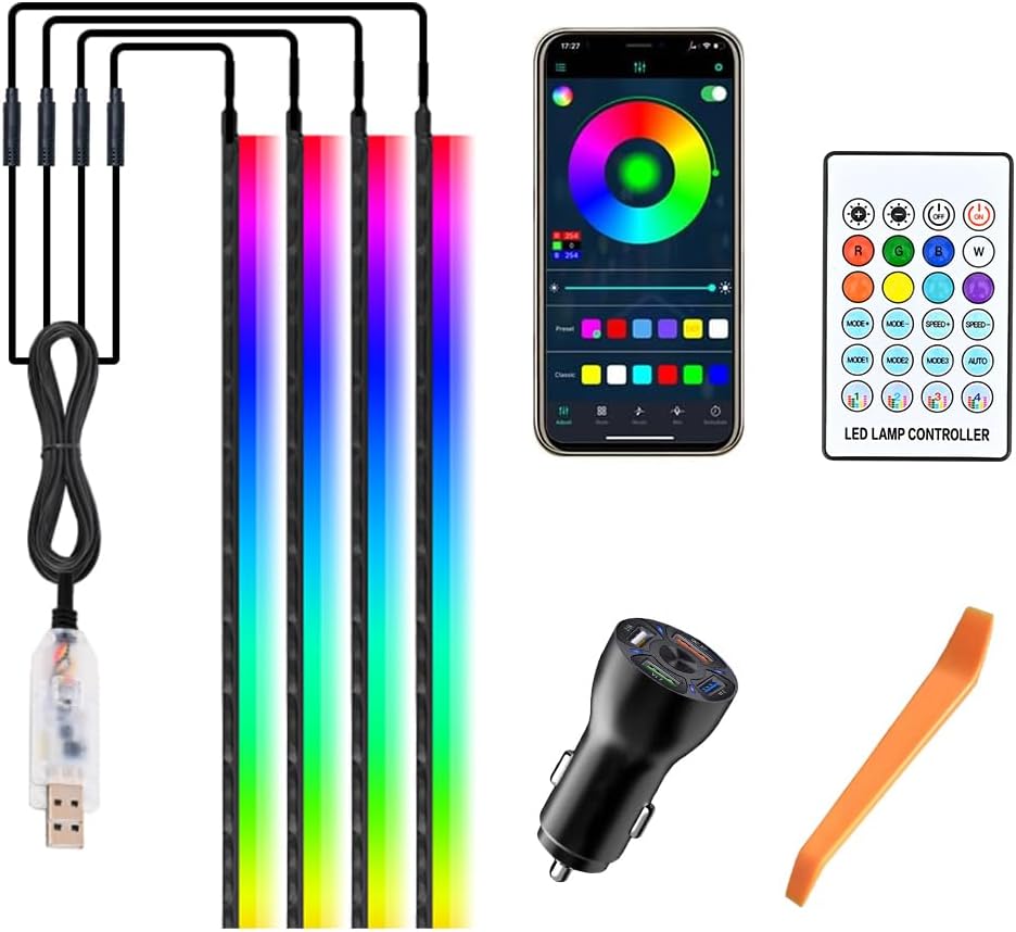 Car SUV Door Frame Ambient Light Lighting, Car Door Ambient Lights LED RGB, Automotive Auto Interior USB Neon Accent Lights Strip Accessories, App Remote Control Music Sync, Acrylic, 4 Pack*11.48ft