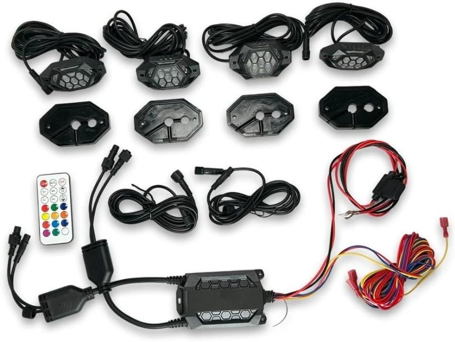 RGB LED Rock Light Accessory Kit (4 Pod) – Bluetooth-Controlled Multi-Color Lighting for Car Truck Jeep ATV UTV Motorcycle Boat – 12V Waterproof Aluminum Housing – Universal Fit
