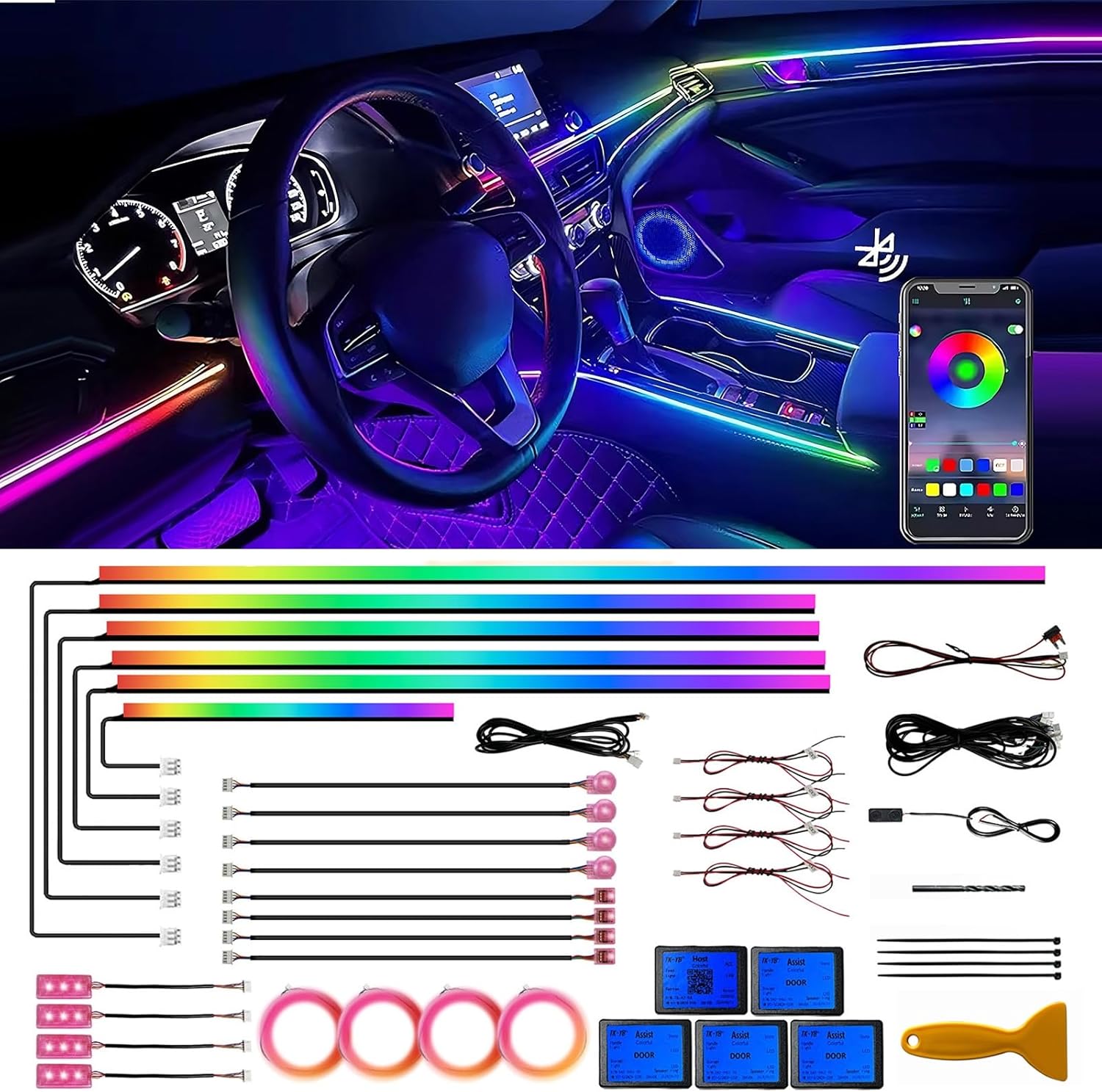 Car Interior Ambient Lights,18 in 1 128 Colorful LED Acrylic Fiber Optic Strip,Universal Multiple Modes Decoration Atmosphere with Music Sync Rhythm,APP Control,RGB Neon Lighting for All Cars