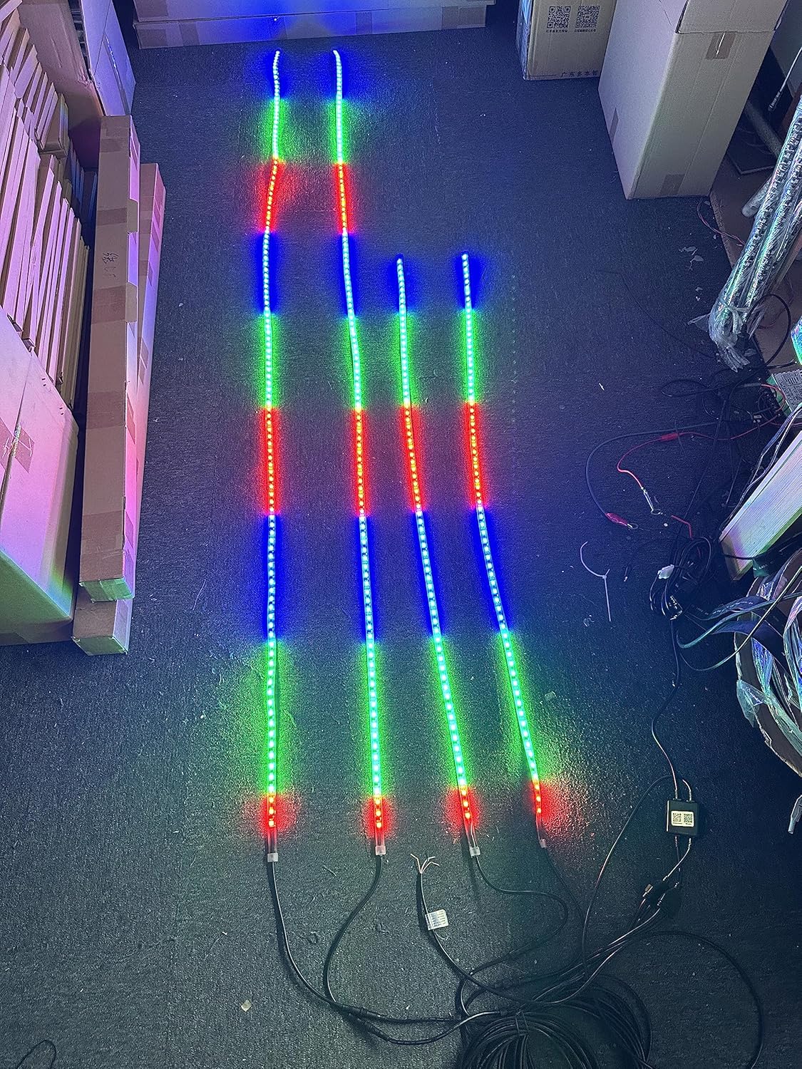 Sando Tech Dream Chasing Color Million Colors Shift Led Strip 2PCS 4Ft + 2PCS 6.5Ft Hood Grill LED Underglow Strip Light 4Plugs Sync Bluetooth/Remote Ctrl for Polaris Slingshot Car Truck