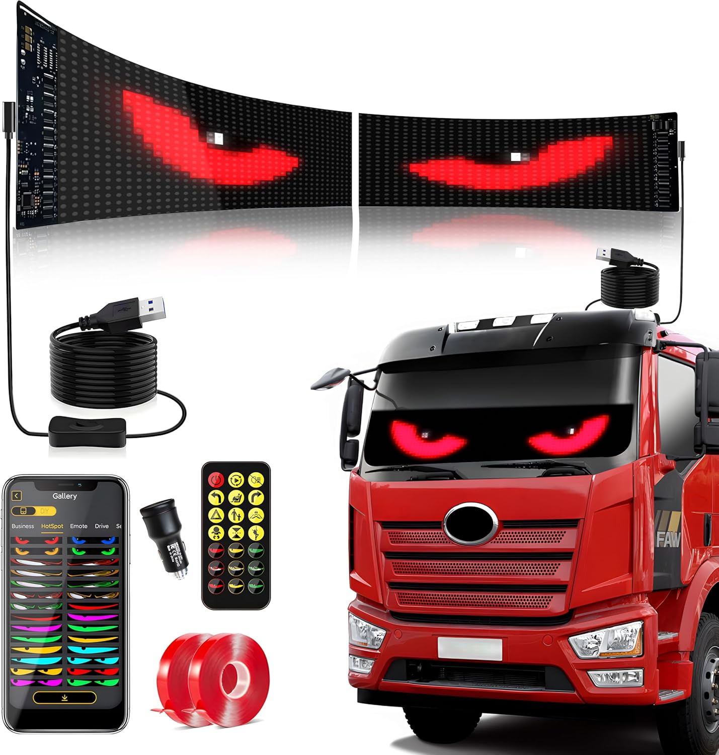 Led Eyes for Truck Windshield 52.3"x7.5" Devil's Eyes Animated, Trylightride Programmable Scrolling Sign for Cars/SUVs/Trucks, Ojos Led para Carro, USB Powered LED Matrix Panel, Remote/App Control