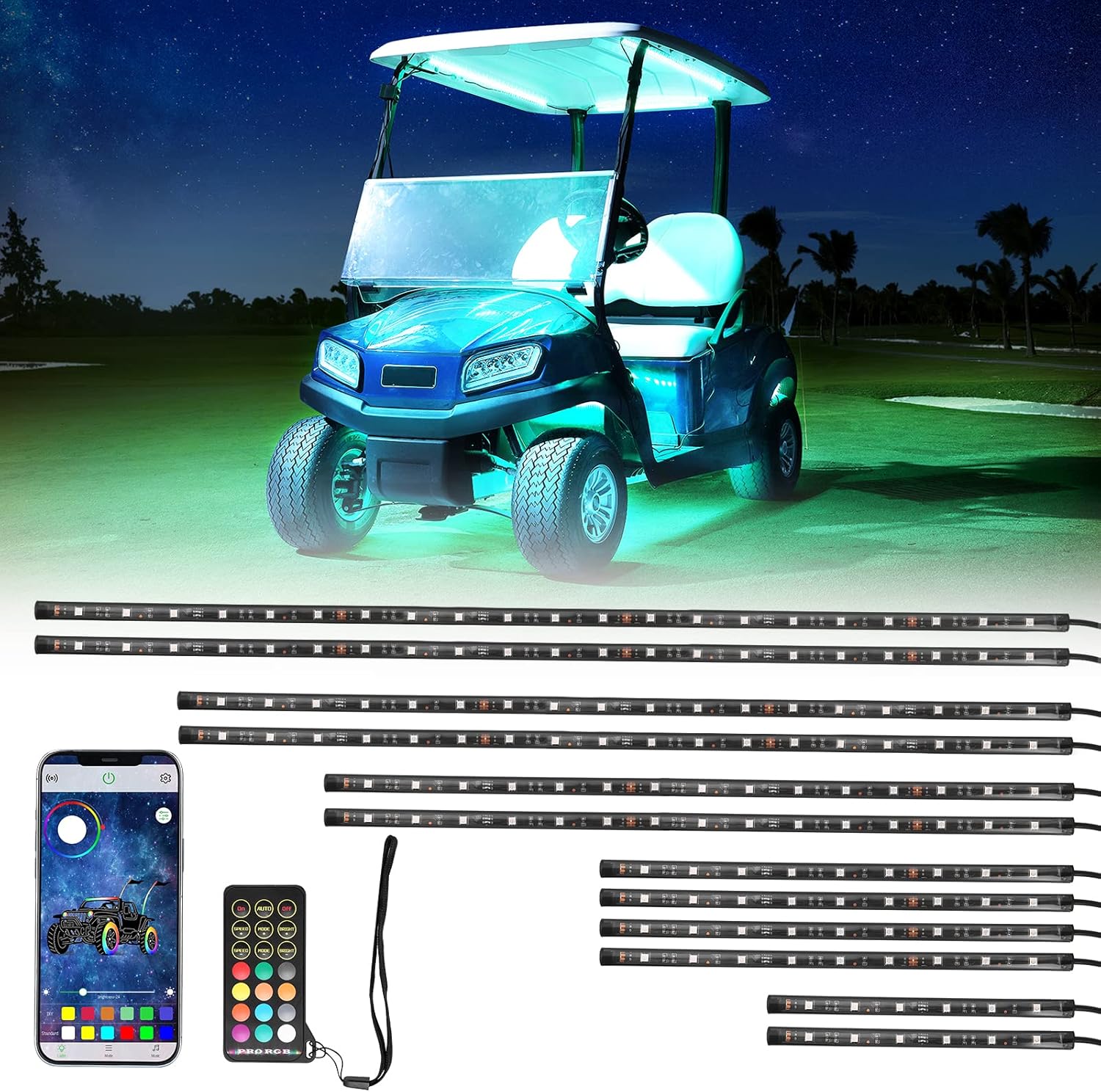 KEMIMOTO 12PCS Million Colors Golf Cart Underglow LED Strip Light Kit 12V Compatible with Club Car, EZGO, Drive, ICON, and Kandi, Waterproof IP68 Accent Neon Lighting Kit with 24 Modes, Multicolor RGB