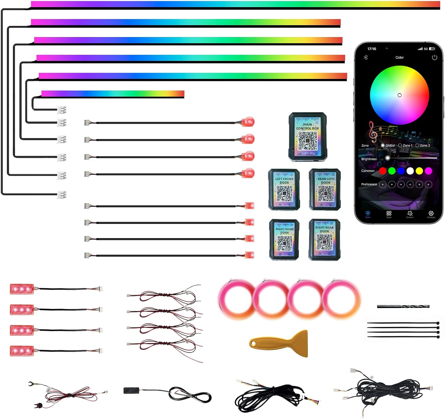 OPT7 24" LED Strip Expansion & Wheel Lights Bundle Kit with App & Remote Control, RGB Multicolor Modes, Music Sync, Easy Installation, Car Decor Accessories