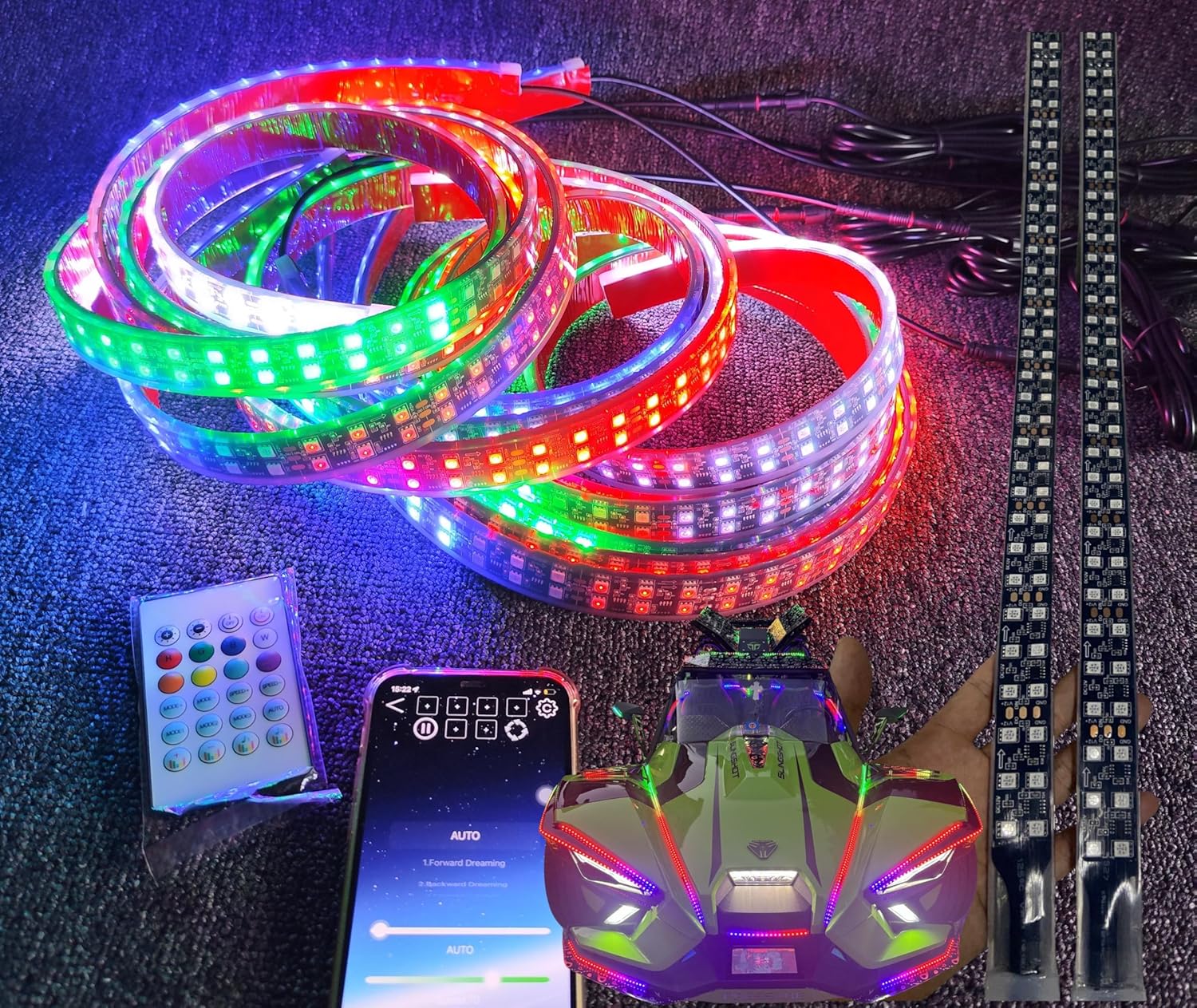 2PCS 5FT 1.4Meters 60" Rolls RGB Dream Color Chasing Flow Breath Strobe LEDs Tinted Full Black Out PCB Smoked Light Strips Bluetooth Remote Ctrl for Car Truck Slingshot