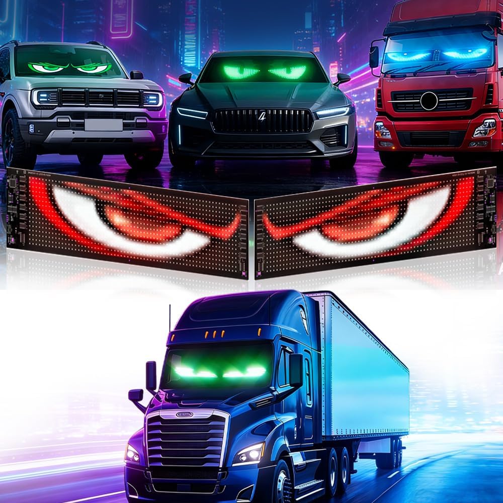 Devil Eyes Light for Truck Windshield - 2PCS 14.7"x3.6" LED Glow Eyes Windshield Decoration,The Car Devil Light with Remote Control and APP is Suitable for Pickup Trucks, Cars,SUV,Jeeps etc