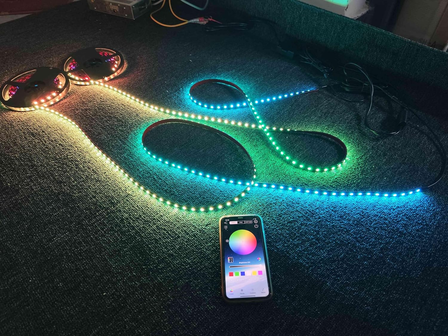 Bluetooth APP + Remote 2PCS 5FT 1.4Meters Double Row Light Strips Dual Rolls RGB Dream Color Chasing Light Strips for Car Truck Vehicle Off-Road Slingshot Fender Underbody Hood Lights