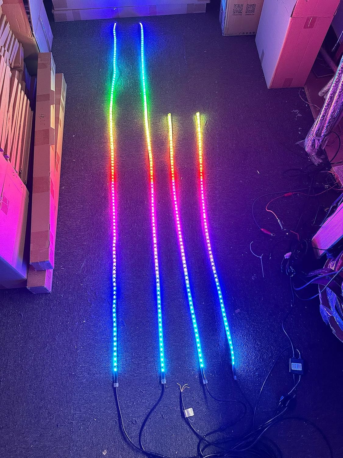 Dream Chasing Color RGB Led Strip 2PCS 4Ft + 2PCS 6.5Ft Underglow Light Kit 12V 4Plugs Sync Bluetooth & Remote Ctrl Fit for Car Truck Boat
