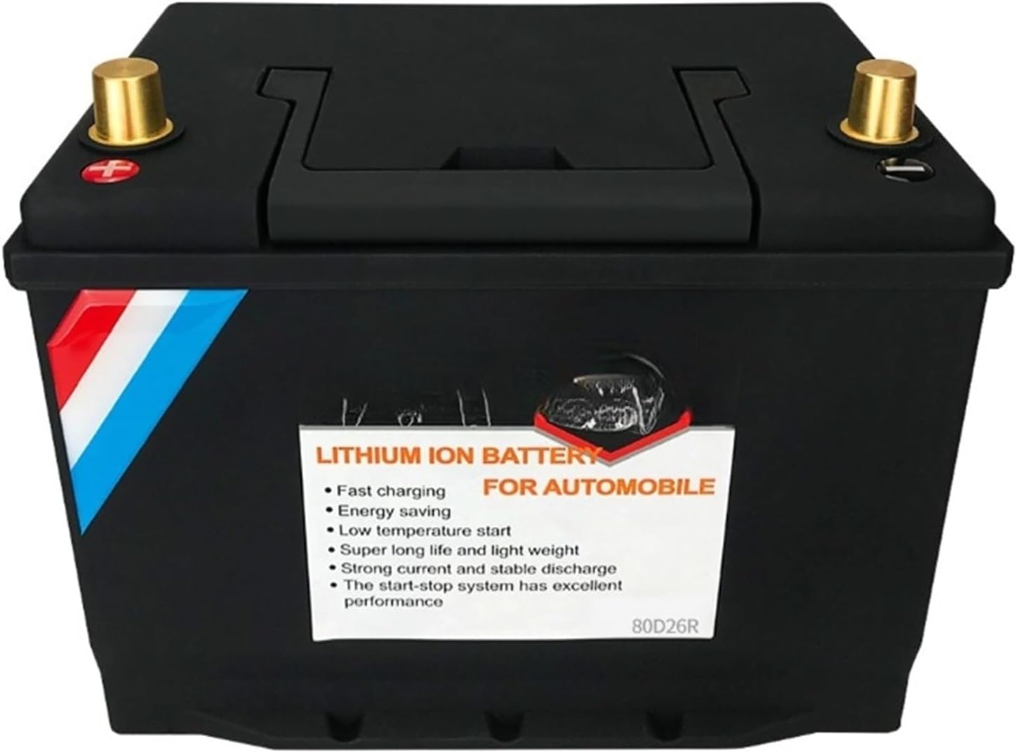 80D26L/R 12V LiFePO4 Lithium Car Starter Battery 80Ah 1300CCA Automotive Replacement Battery with BMS for Car Start-up System(80D26R)