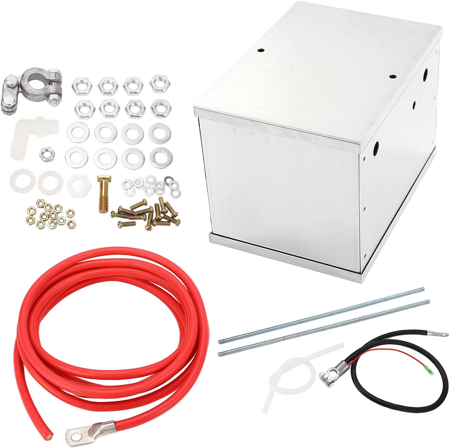Battery Box, Complete Aluminum Battery Box Relocation Kit, High Strength Assemble Stainless Steel Battery Relocation Kit for Car RV Marine