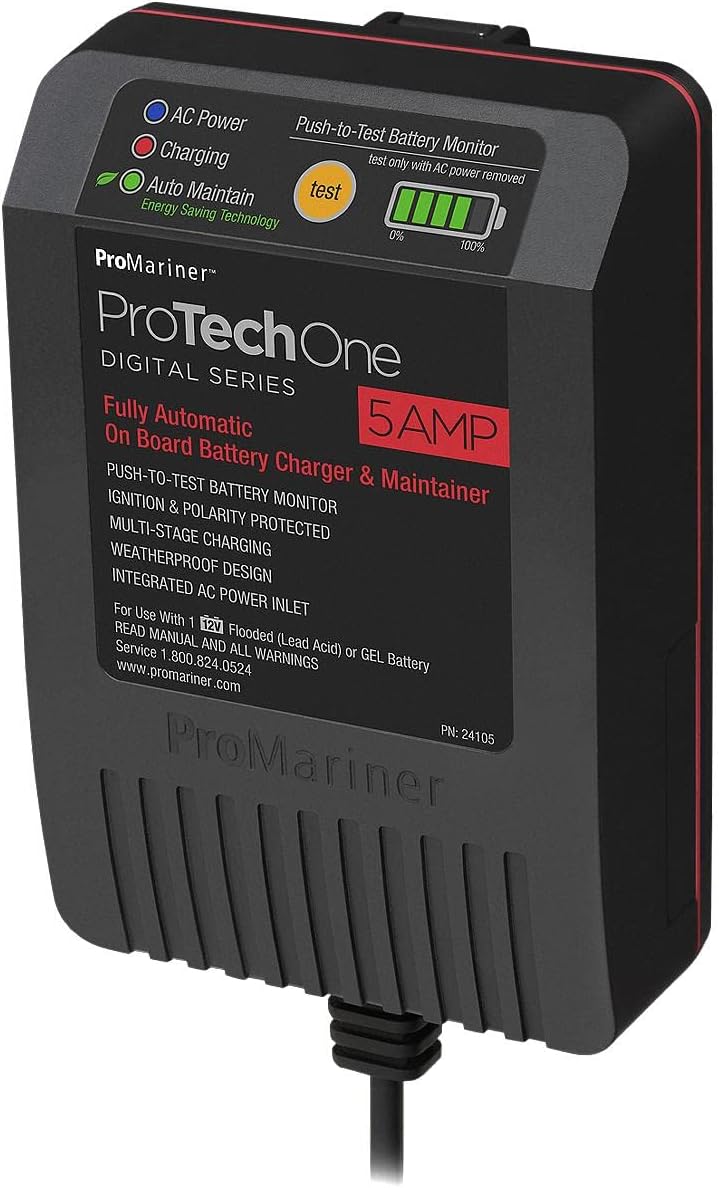 ProMariner 24105 ProTechOne Digital Series 5 Amp Fully Automatic On-board Battery Charger and Maintainer with Integrated AC Inlet